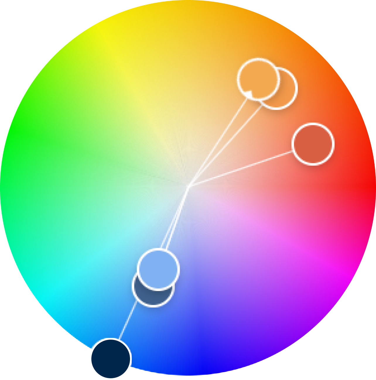 I used Adobe Colour and my previous iterations to select these final colours. I used the deepest orange as the anchor, selecting an analogous yellow and light orange. I liked a light blue from my colour experiments and used a variation of a split complementary palette to get the grey-blue and deep blue.